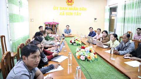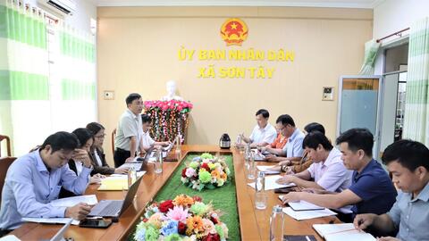 Điểm cầu Xã Sơn Tây dự hợp trực tuyến báo cáo công tác triển khai các biện pháp ứng phó với bão số 12 và mưa lũ trên địa bàn tỉnh