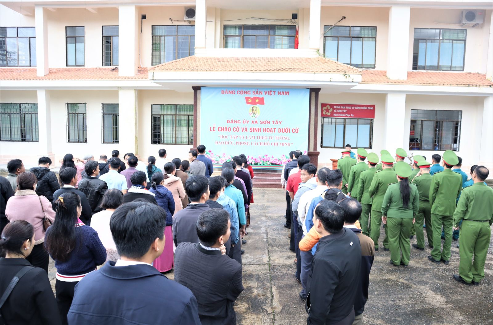 Hình ảnh Chào toàn thể cán bộ, đảng viên, công chức, viên chức và người lao động chào cờ và sinh hoạt chính trị dưới cờ xã Sơn Tây.