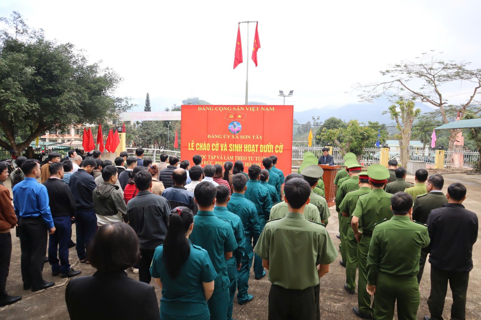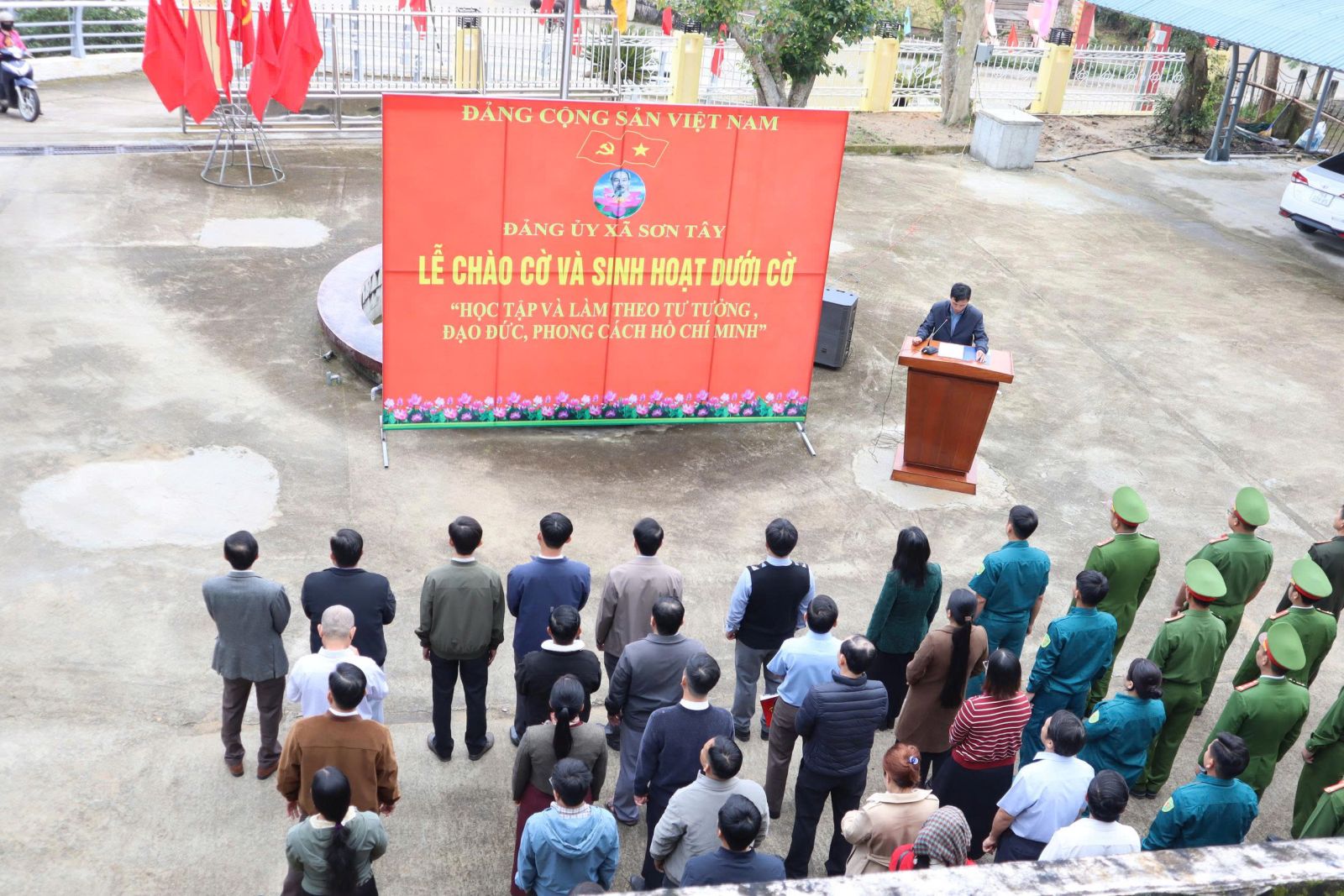 Thông qua Lễ Chào cờ đầu tháng, Đảng ủy xã Sơn Tây tiếp tục tạo sự thống nhất về nhận thức và hành động trong toàn thể cán bộ, đảng viên; khơi dậy tinh thần đoàn kết, quyết tâm thực hiện thắng lợi các mục tiêu, nhiệm vụ phát triển kinh tế – xã hội, quốc phòng – an ninh của địa phương trong thời gian tới.