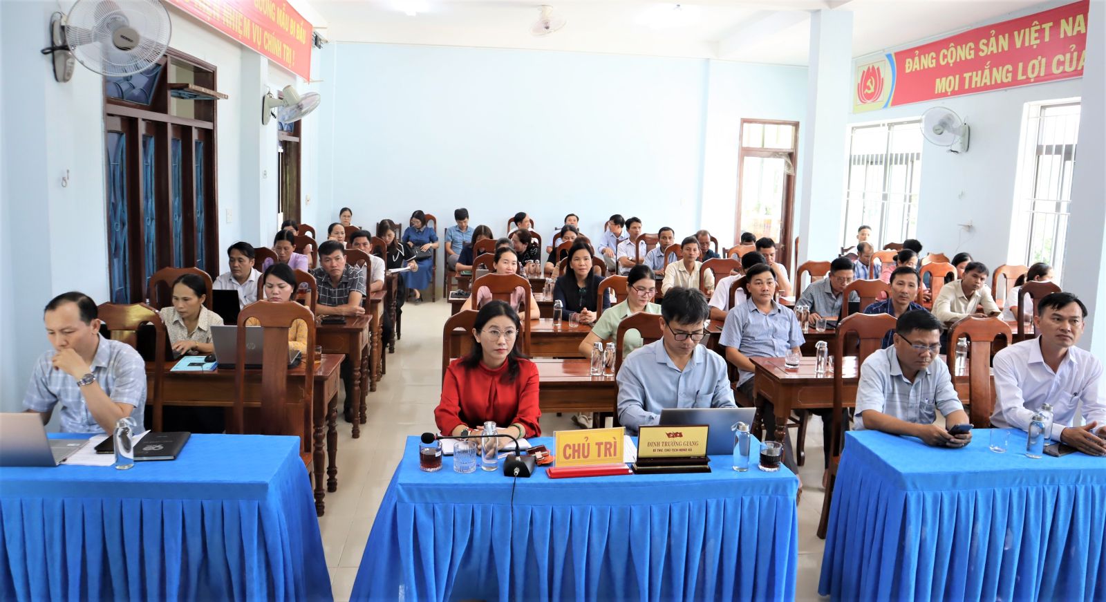 Dự và chủ trì Hội nghị tại điểm cầu xã có đồng chí: Đinh Trường Giang, Bí thư Đảng ủy, Chủ tịch HĐND xã và đồng chí Bùi Thị Anh Dũng, Phó Bí thư Thường trực Đảng ủy xã, cùng tham dự có các đồng chí Ủy viên Ban Thường vụ Đảng ủy; Ủy viên Ban Chấp hành Đảng bộ xã nhiệm kỳ 2025 – 2030; Ủy viên Ủy ban kiểm tra đảng ủy xã; các đồng chí Trưởng, phó các Cơ quan chuyên trách tham mưu giúp việc Đảng ủy; các đồng chí Trưởng, Phó các cơ quan chuyên môn thuộc UBND xã; Lãnh đạo Mặt trận Tổ quốc và các tổ chức chính trị - xã hội; Chuyên viên Văn phòng Đảng ủy và Ban Xây dựng Đảng; Hiệu trưởng, phó hiệu trưởng các trường học trên địa bàn xã; Bí thư các chi, đảng bộ trực thuộc Đảng ủy.