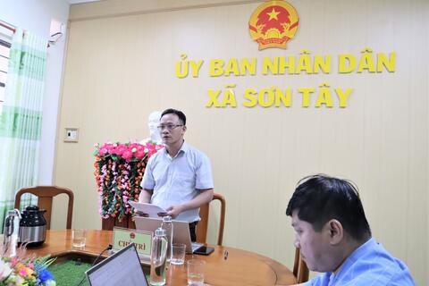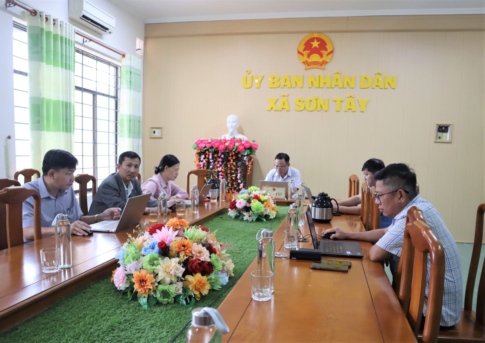 Tại điểm cầu UBND xã Sơn Tây, có đồng chí Đinh Công Lập – Phó Chủ tịch UBND xã Sơn Tây chủ trì hội nghị. Tham dự hội nghị có lãnh đạo các Phòng, Ban chuyên môn của xã.