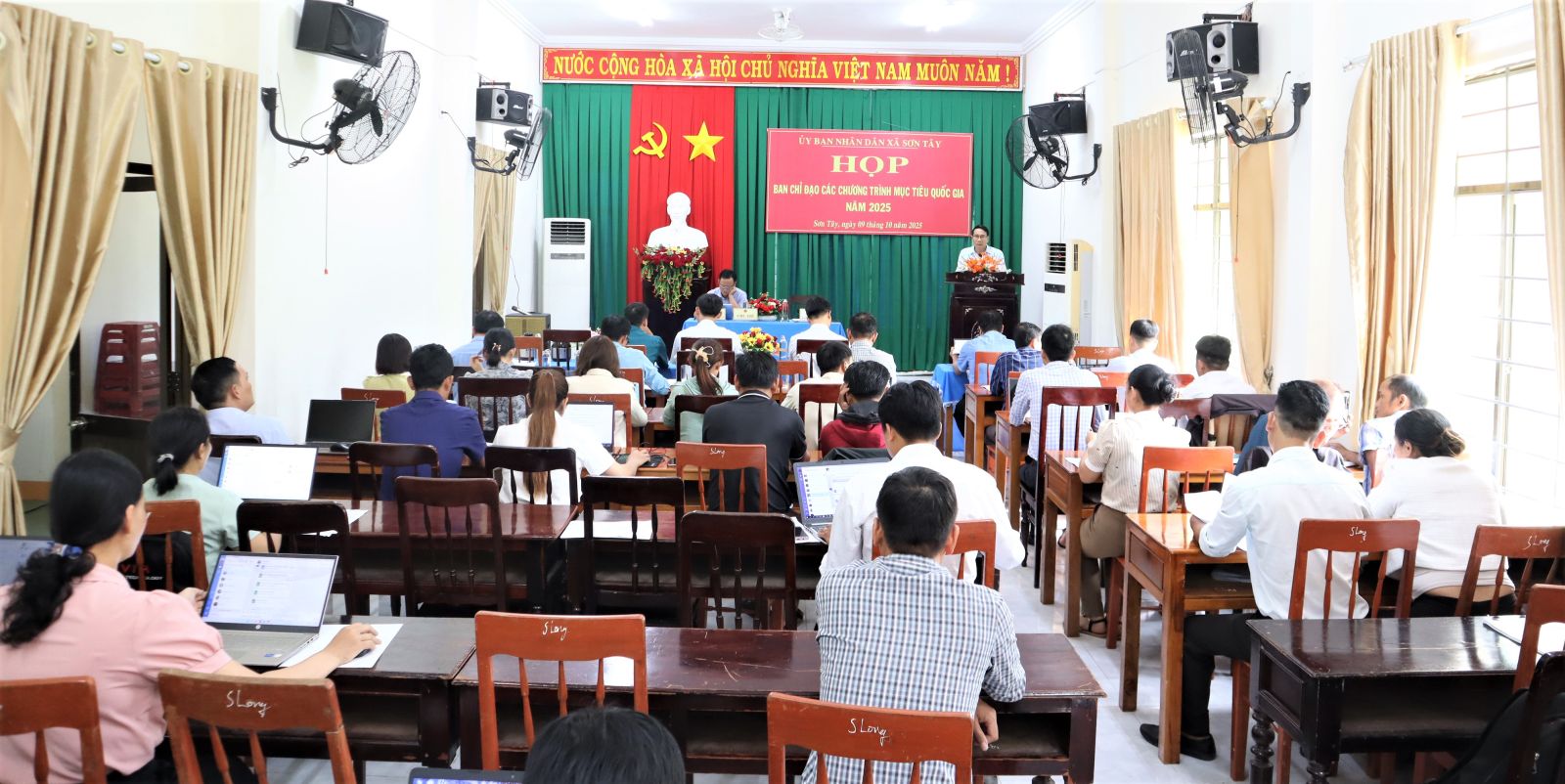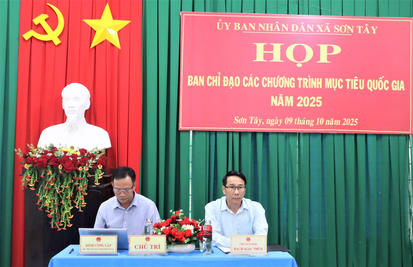 Chiều 09/10, UBND xã Sơn tây tổ chức Họp Ban Chỉ đạo thực hiện các Chương trình Mục tiêu Quốc gia (MTQG). Cuộc họp nhằm đánh giá kết quả triển khai thực hiện các chương trình MTQG, tiến độ giải ngân các nguồn vốn thuộc các Dự án, trong 9 tháng đầu năm 2025, triển khai nhiệm vụ trọng tâm và giải pháp 3 tháng cuối năm 2025.