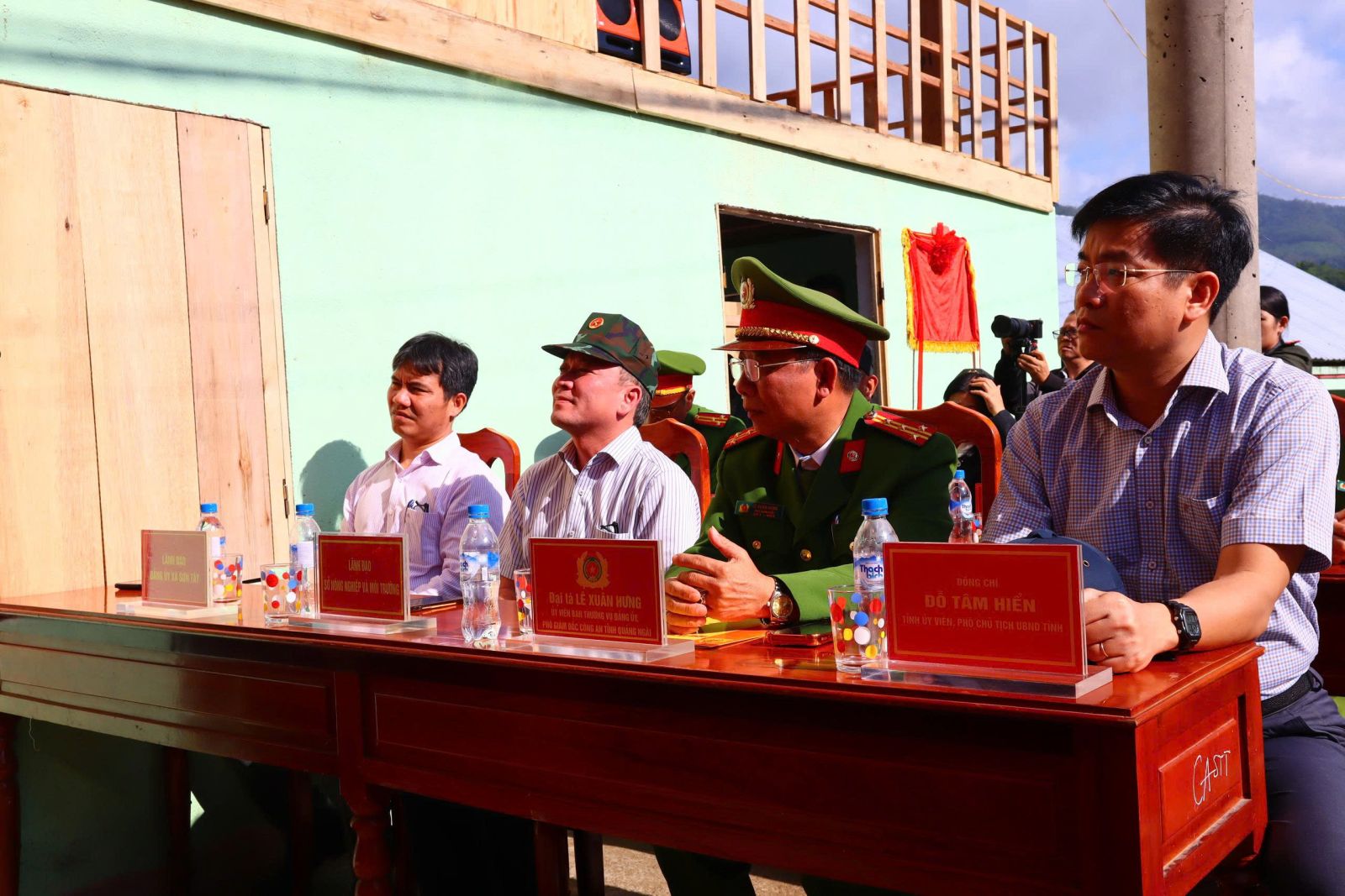 Tham dự buổi lễ có đồng chí Đỗ Tâm Hiển – Tỉnh ủy viên, Phó Chủ tịch UBND tỉnh; đại diện lãnh đạo các sở, ban, ngành của tỉnh. Về phía đơn vị chủ trì có lãnh đạo Công an tỉnh và đại diện các phòng nghiệp vụ. Về phía địa phương, có các đồng chí: Đinh Trường Giang – Bí thư Đảng ủy, Chủ tịch HĐND xã; Bùi Thị Anh Dũng - Phó Bí thư Thường trực Đảng ủy xã; Bạch Ngọc Thêm – Phó Bí thư, Chủ tịch UBND xã; Đinh Thị Hoa – Chủ tịch Ủy ban MTTQ Việt Nam xã; Đinh Công Lập – Phó Chủ tịch UBND xã; cùng gia đình bà Đinh Thị Vôn và đông đảo Nhân dân thôn Huy Măng.